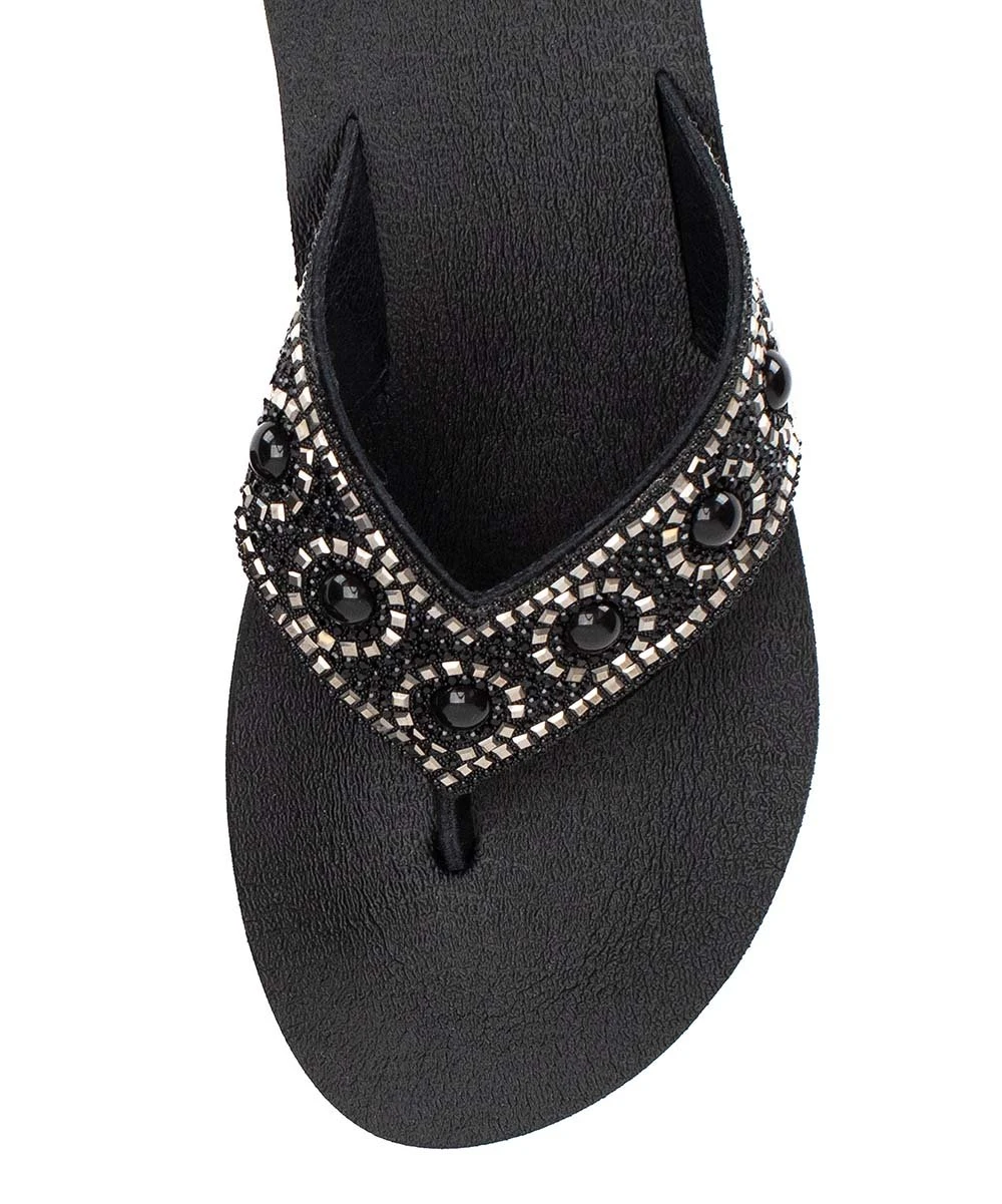 Rhinestone-embellished sandal featuring a comfortable padded footbed.