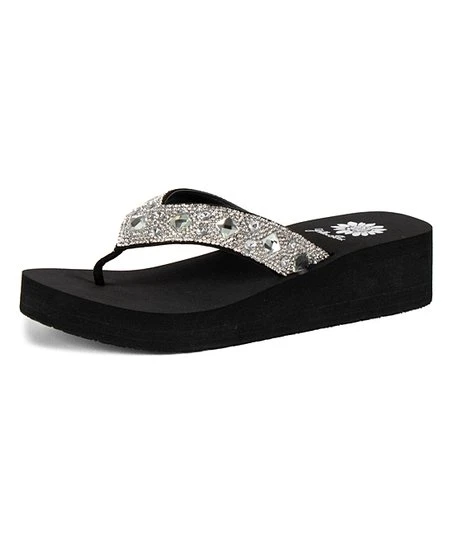 Let your inner sparkle shine with this pair of embellished sandals made with a cushioned wedge heel.