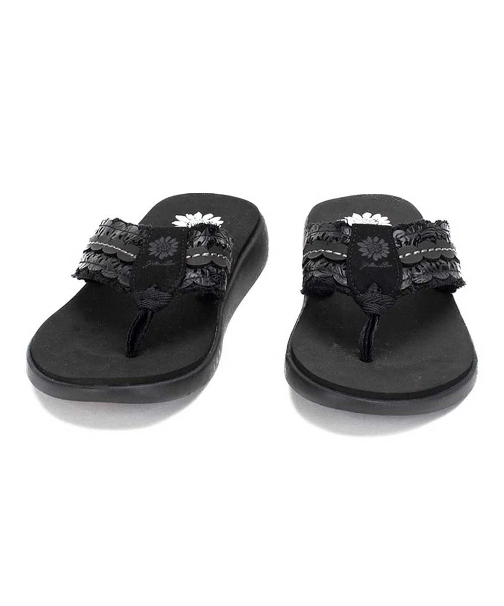 Chic slip-on sandal featuring floral cut-outs and a flexible rubber sole.