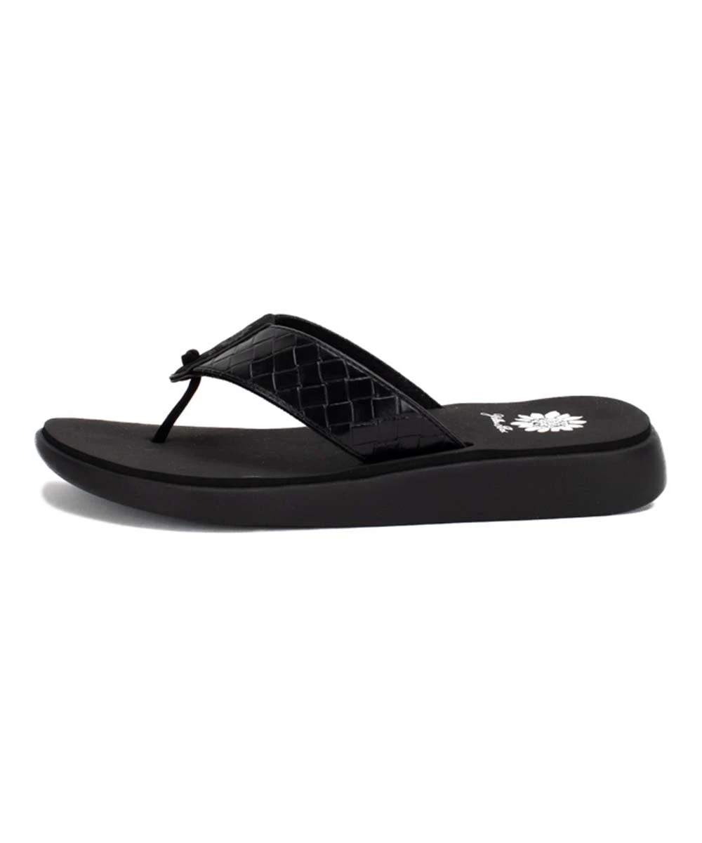 Chic slip-on sandal featuring interlaced straps and a flexible rubber sole.