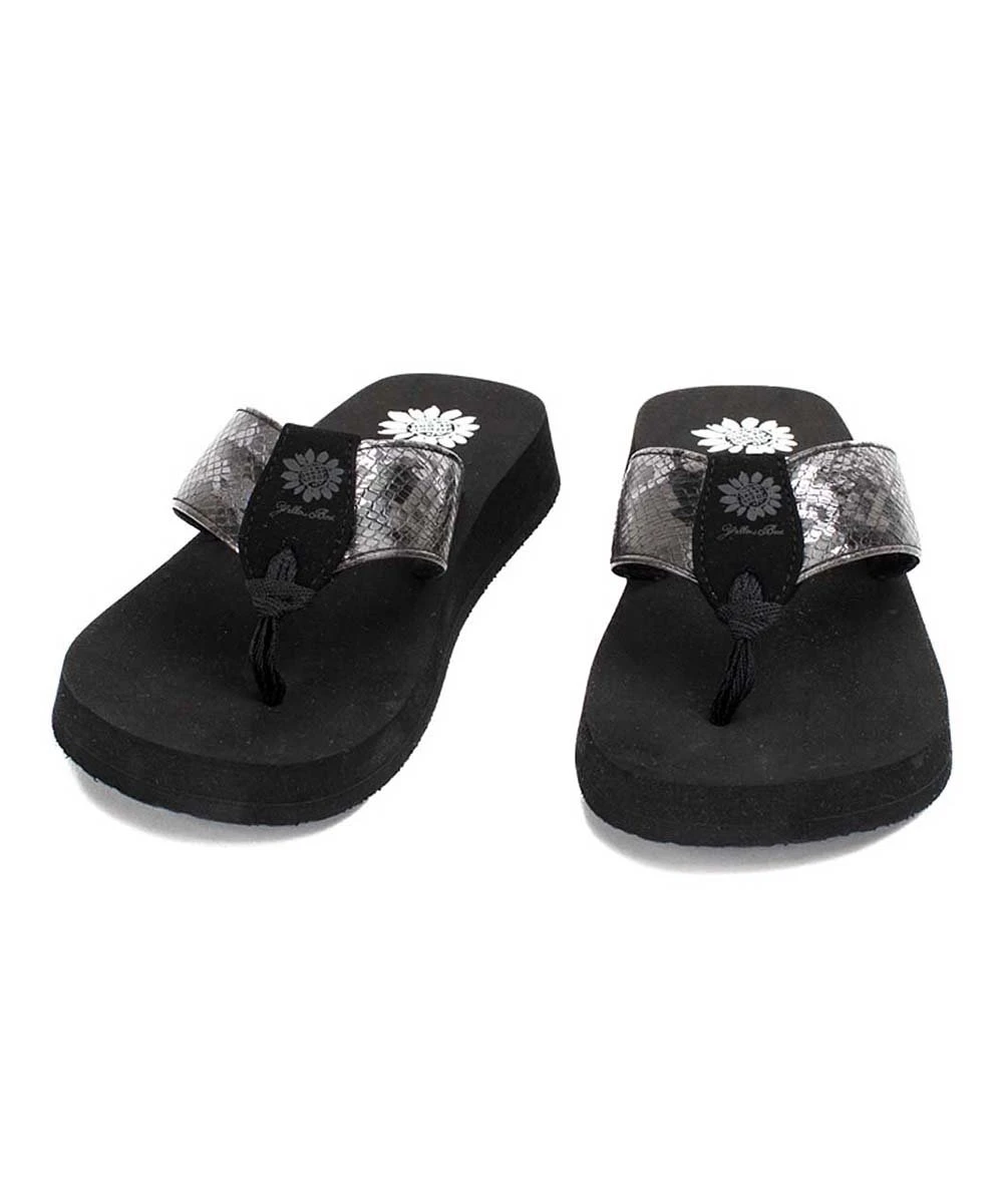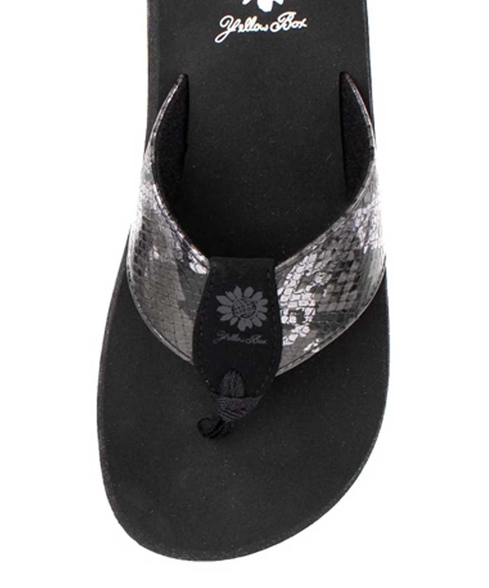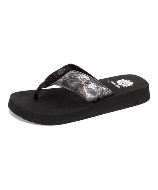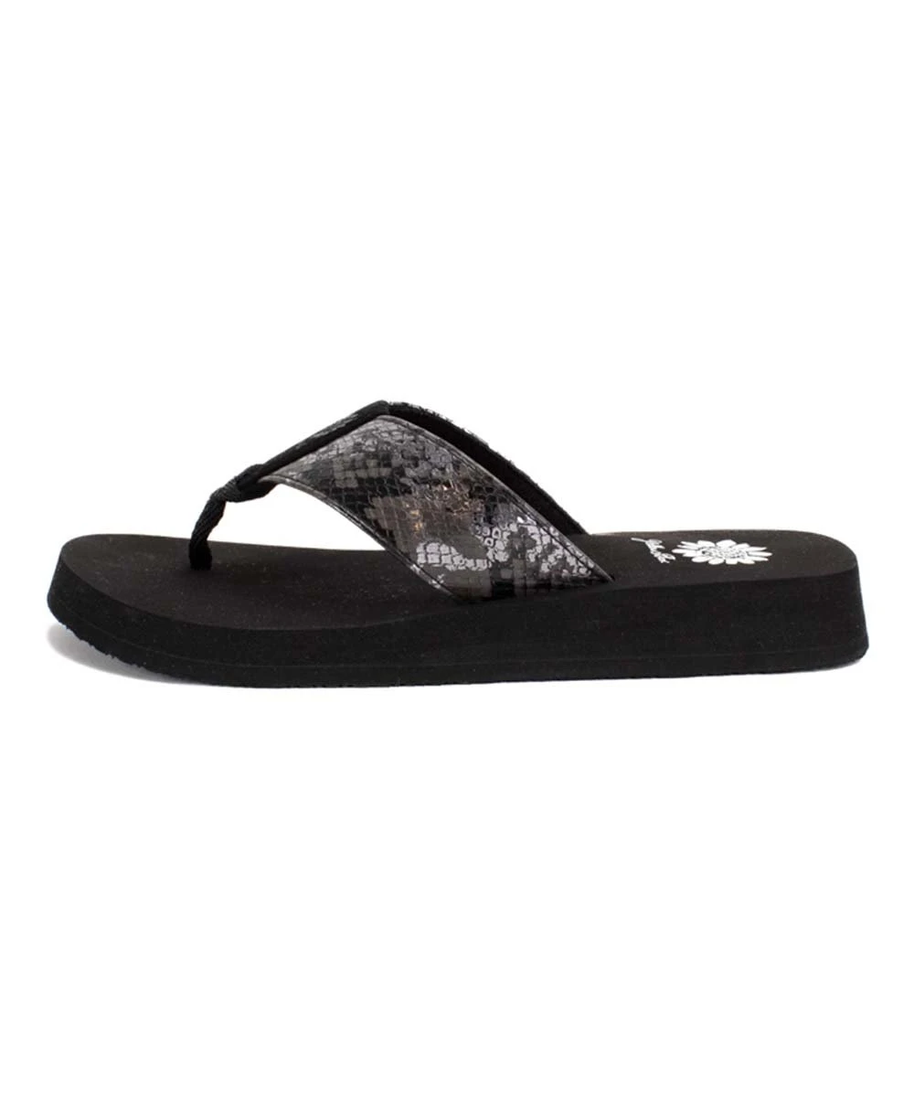 Chic snake-embossed sandal featuring a flexible rubber sole.