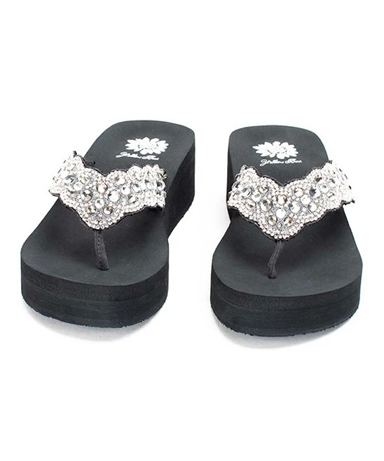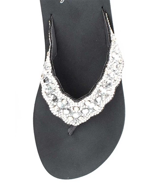 Add these sparkling sandals to your shoe collection featuring a classic hue and comfortable low heel for easy walking or hanging out on the beach.