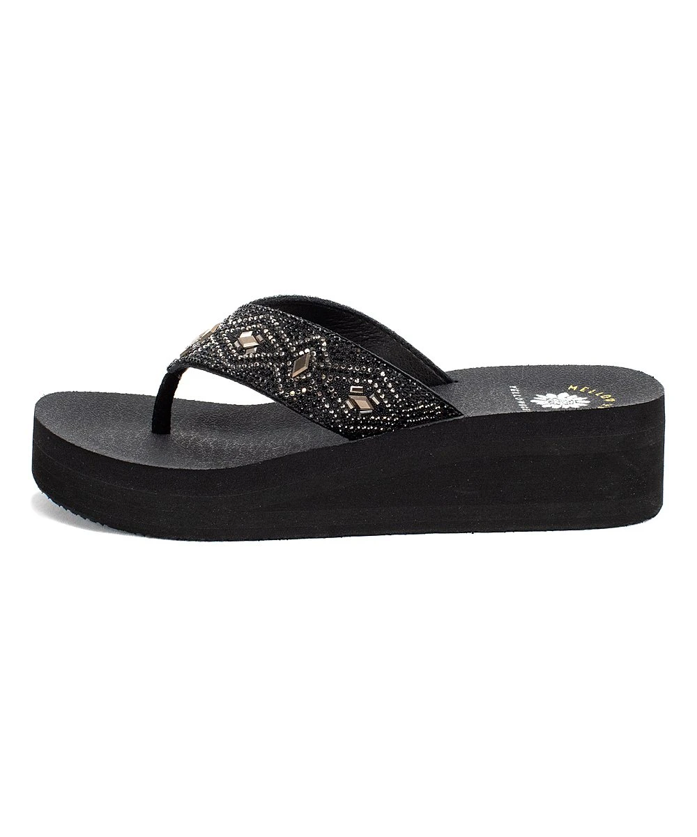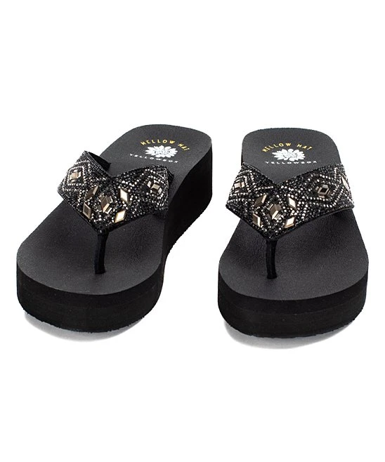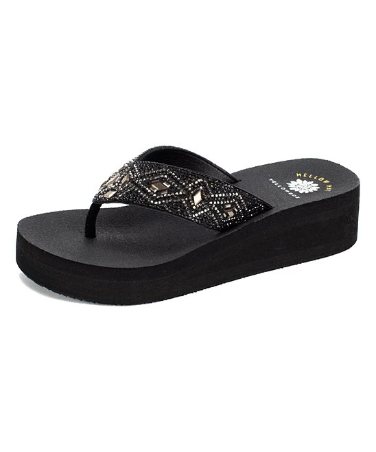Step out in sparkly style when you slip into this pair of sandals featuring rhinestone embellishments and wedge heel.
