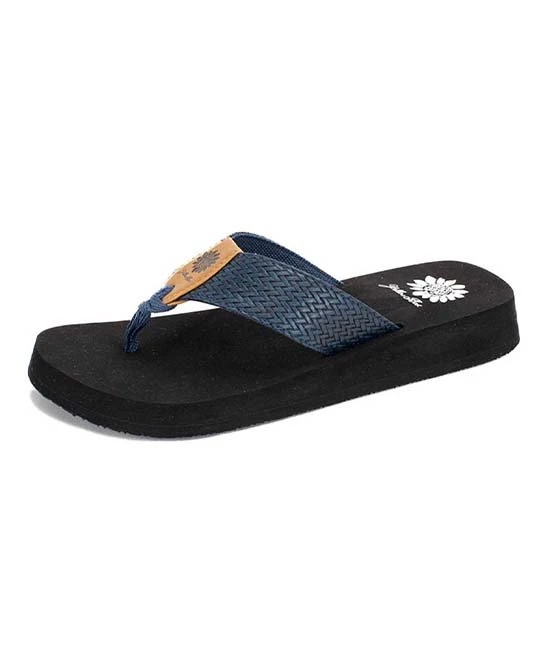 Casual slip-on sandal with a woven Y-strap and a logo patch detail at the toe post. A cushioned footbed and traction sole allow all-day wear.