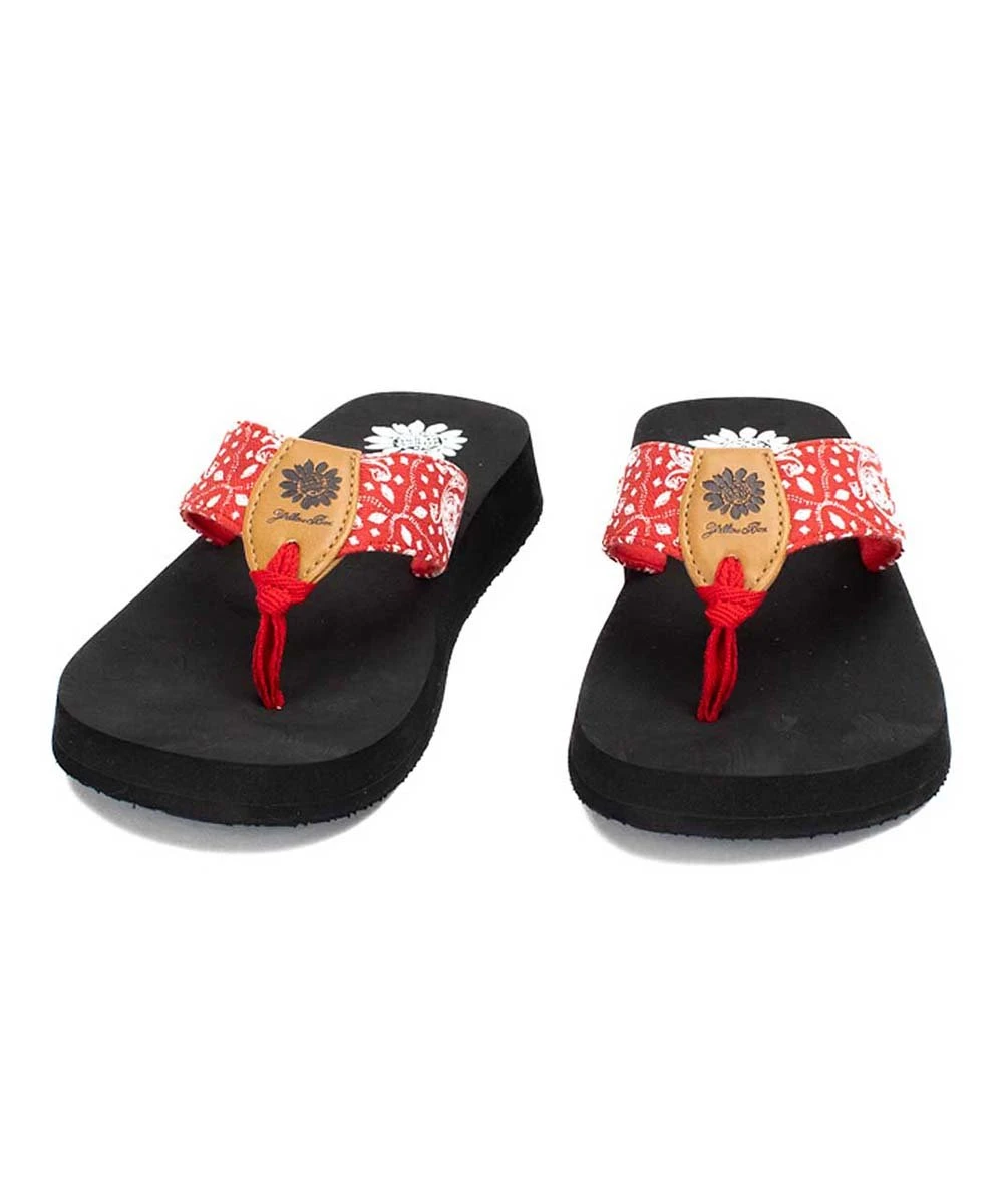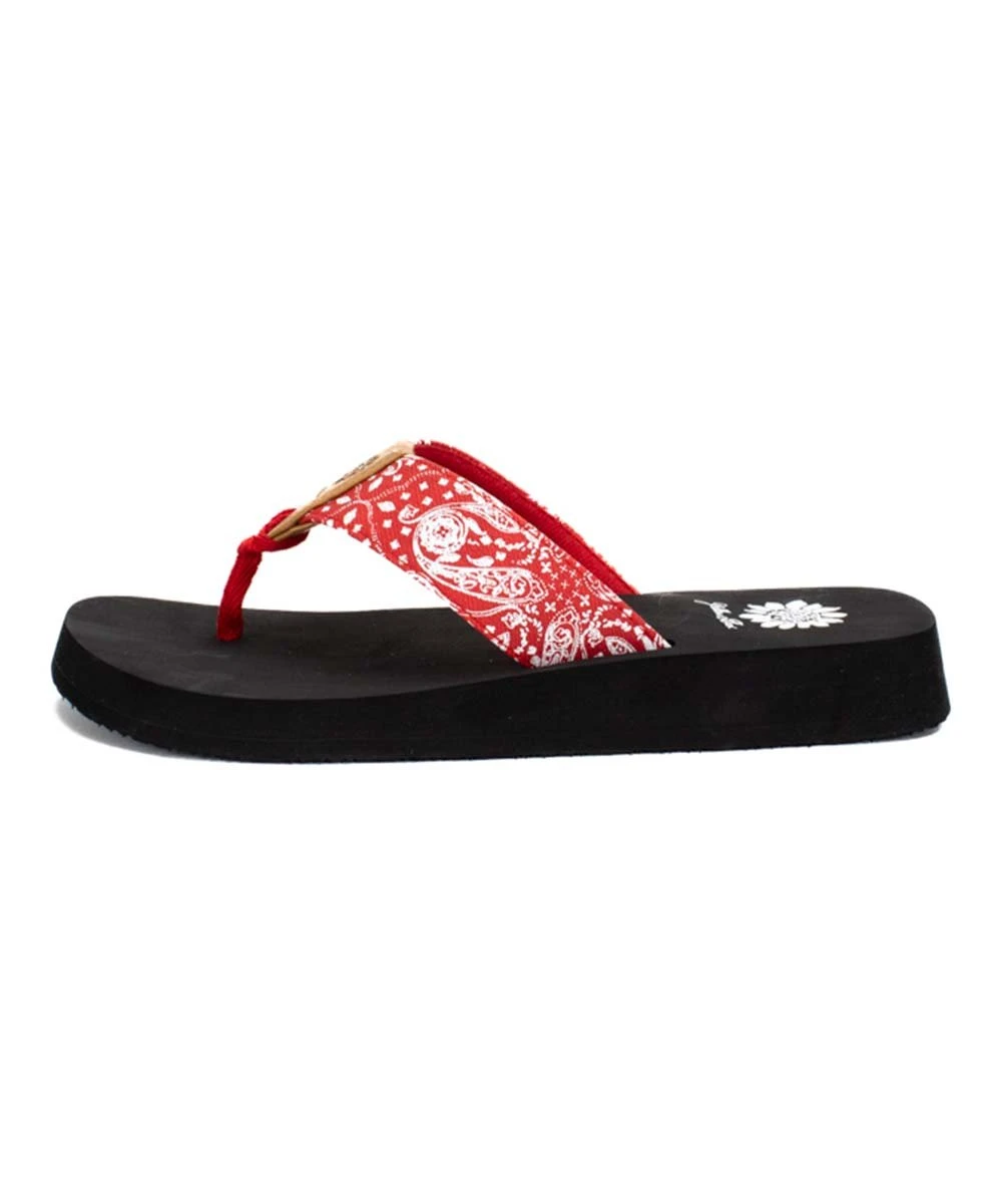 Colorful slip-on sandal featuring a bandana-print upper and flexible rubber sole.